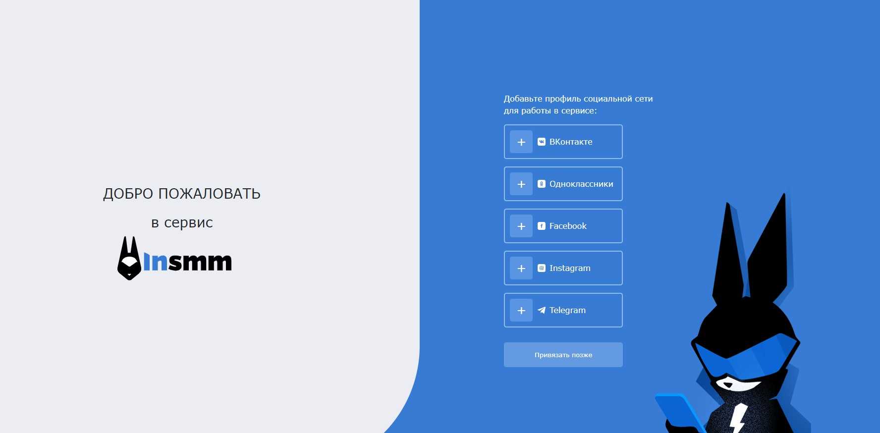 InSMM позволяет работать с наиболее популярными социальными сетями: Instagram, ВКонтакте, Telegram, Facebook и Одноклассники.