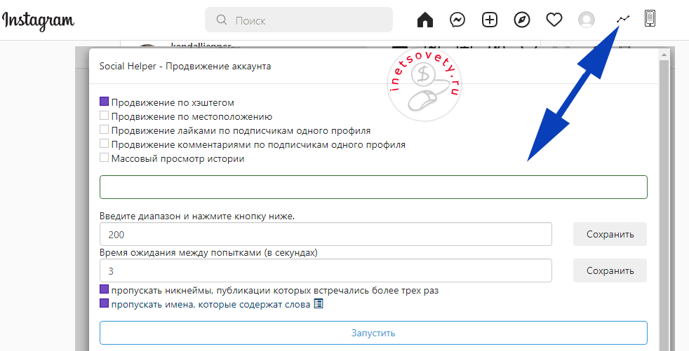 - поиск по нику или хештегу;