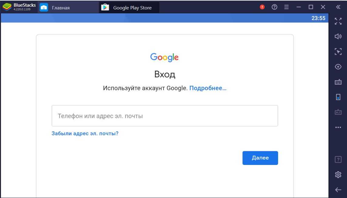 После завершения установки Bluestacks, или когда вы открываете Google Play Market вам предложит войти в Google аккаунт. Авторизуйтесь, чтобы скачать приложение instagram.