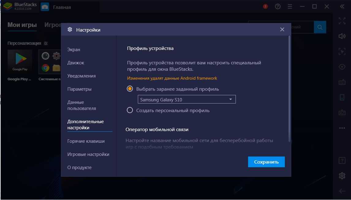Мы рекомендуем в настройке Bluestacks (Шестеренка, нижний правый угол)-> Дополнительные настройки -> выбрать Samsung Galaxy S10