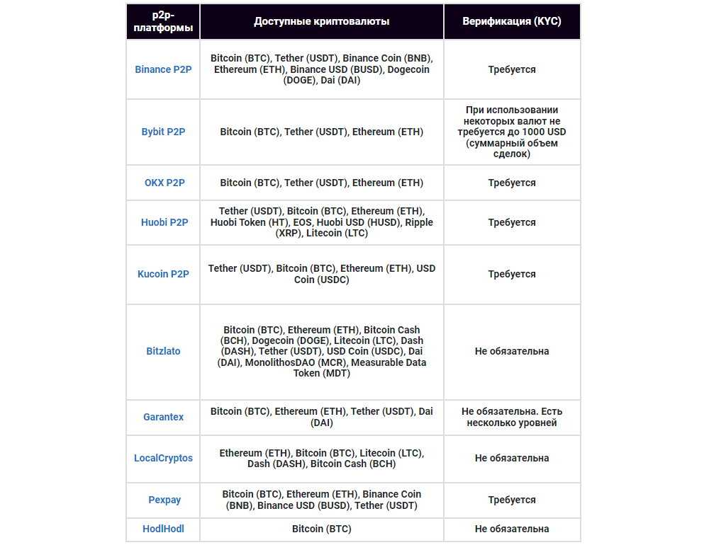 P2P биржи для покупки криптовалюты