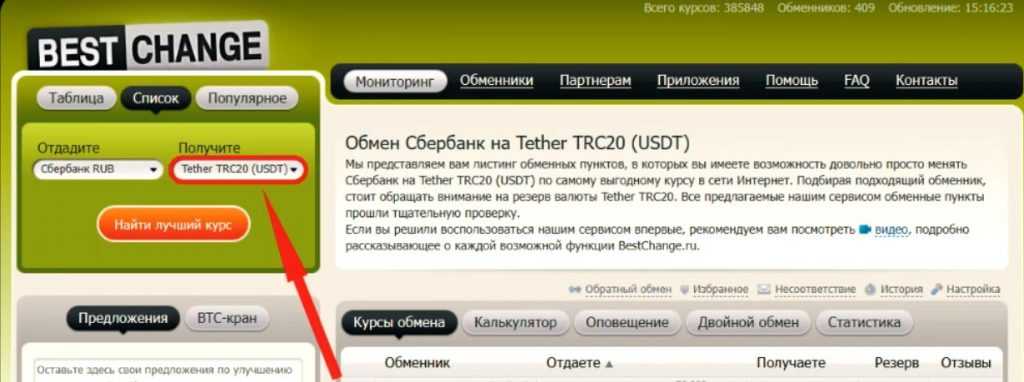 Есть еще вариант купить на обменники. Заходим на BestChange и выбираем ваше направление. Допустим Сбербанк и покупку Tether TRC20 (USDT), что это такое и какие криптодоллары бывают я расскажу чуть позже. Смотрите на количество сделок, отзывов и обмениваете. Обмана тут не будет, не переживайте!