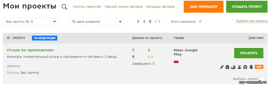 Выбирайте что вам нужно, прокручивайте страницу вниз и завершайте создание проекта. Задание отправляется на модерацию, как только его одобрят, можно будет пополнить его баланс, нажав кнопку Оплатить: