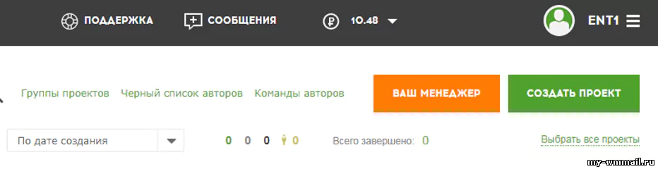 Теперь включаем режим заказчика и переходим в первый пункт Мои проекты. Откроется страничка с кнопкой Создать проект: