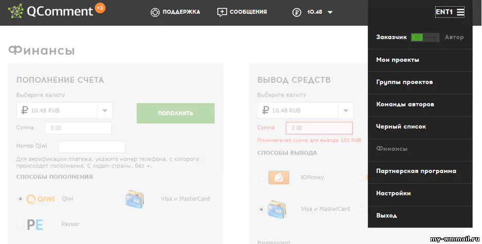 Начнем с самого крутого сервиса, где удается получить накрутку высокого качества. Кьюкоммент это биржа комментариев, также сюда добавляются мелкие задания. Вы можете зарегистрироваться в качестве заказчика и предлагать исполнителям скачать ваше приложение, после чего написать к нему отзыв: