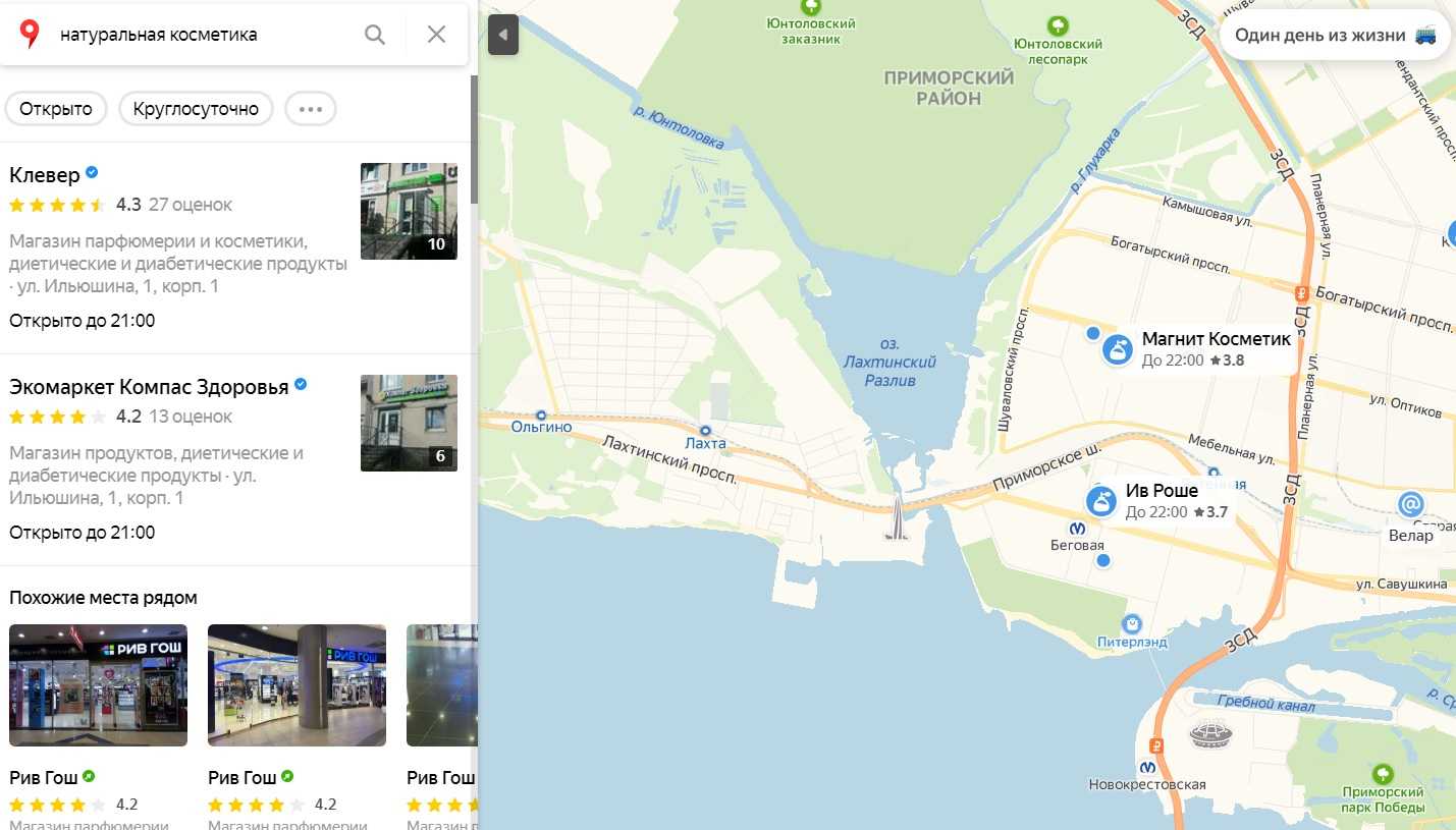Пользователям, которые ищут ресторан, медицинский центр или любое другое заведение, поисковики показывают карту со списком организаций рядом. Насколько высоко окажется заведение в этом списке, зависит от близости к тому, кто ввел запрос, от упоминаний адреса заведения в интернете, а также от отзывов других пользователей.