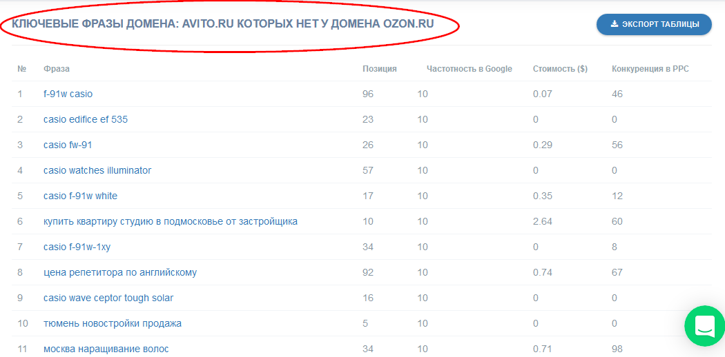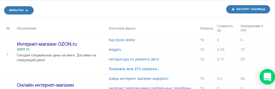 Эти отчеты позволят вам сформировать предварительное мнение, кто является конкурентом по этому запросу и какие ключевые слова они используют.