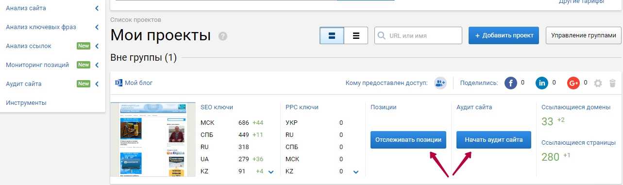 На примере моего блога предлагаю рассмотреть один из модулей этой платформы — Аудит сайта, и провести SEO-анализ блога, что меня является наиболее актуальным.
