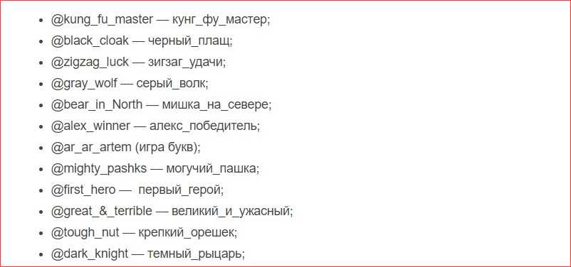 воспользоваться списком красивые ники для инстаграмма. Такие подборки с завидным постоянством появляются и обновляются в сети. Для использования идеи достаточно проверить, не занято ли обозначение, после чего зарегистрировать новый профайл с понравившейся комбинацией;