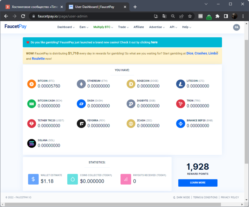 Самым известным микровалютным кошельком является Faucet.pay. После регистрации вы сможете получать и отправлять токены по электронной почте или адресу конкретной криптовалюты. Некоторые сайты интегрируют возможность платежей через Faucet.pay, обеспечивая переводы без комиссий. Рекомендую использовать такой вариант кошелька в том случае, если вы получаете переводы от рефералов, выполняете задания на разных сайтах или обращаетесь к автокранам.