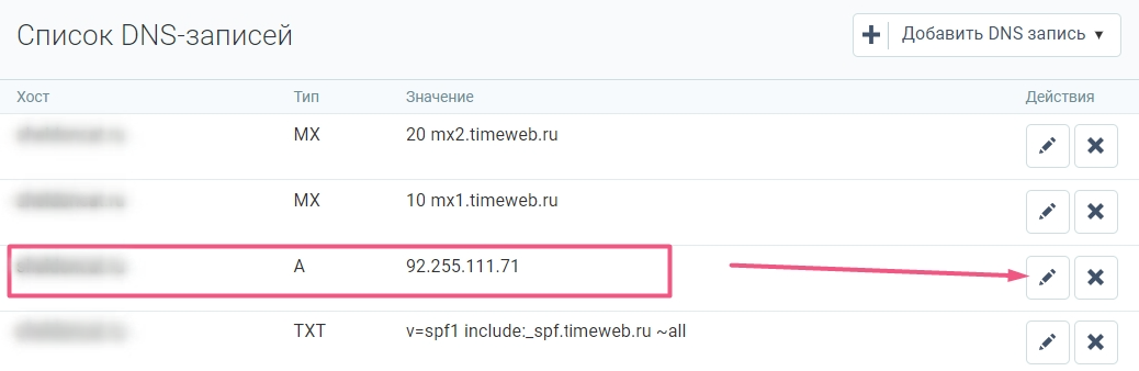 Добавление DNS-записей