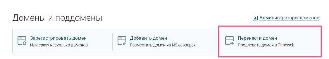 1. В личном кабинете регистратора найдите кнопку «Перенести домен».