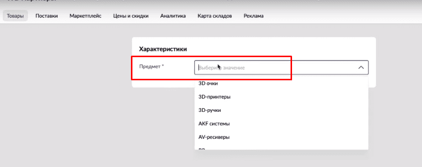 Важно! Выбор категории в дальнейшем повлияет на размер комиссии за хранение товара, поэтому изучите тарифы заранее. Только после выбора предмета WB выводит список атрибутов