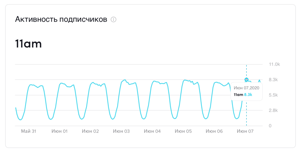 Это бесценная информация, потому что она показывает не только время общей активности пользователей TikTok, но и время активности ваших собственных подписчиков.
