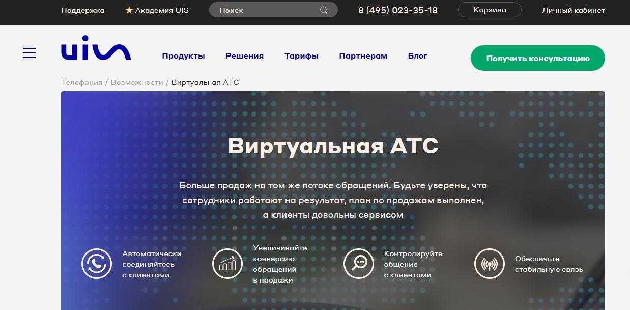 UIS – это платформа облачной АйПи-телефонии, виртуальная АТС. Она размещается в облаке (на сервере оператора). Такую АТС не надо стационарно устанавливать и обслуживать, а также оплачивать электроэнергию, которую она потребляет.