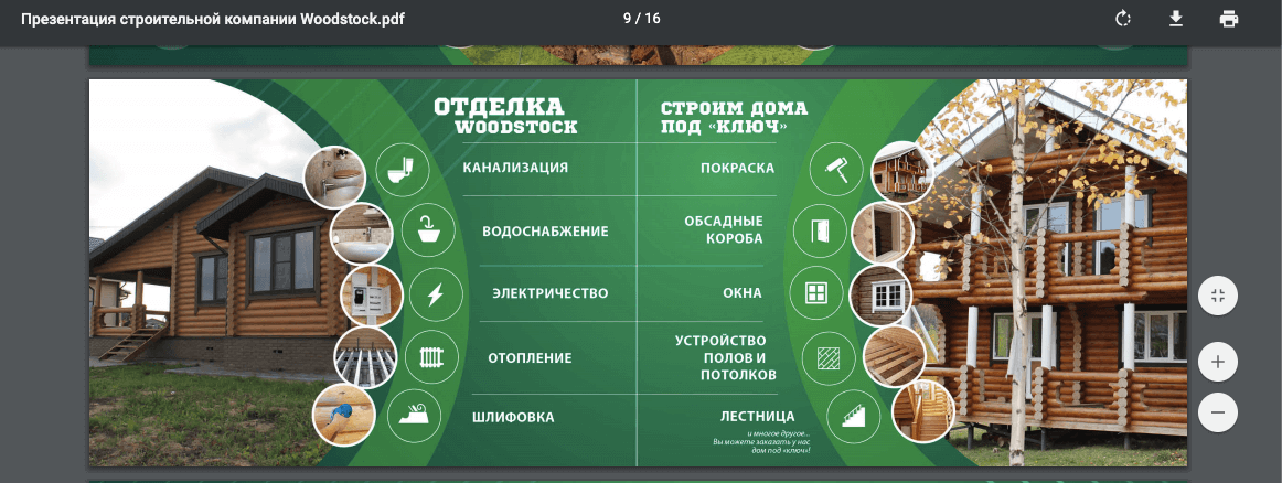 Сразу бросается в глаза крутое оформление предложения с помощью инфографики. Первое впечатление — ребята реально очень подробно разбираются в строительных услугах и им можно доверить объект любой сложности.