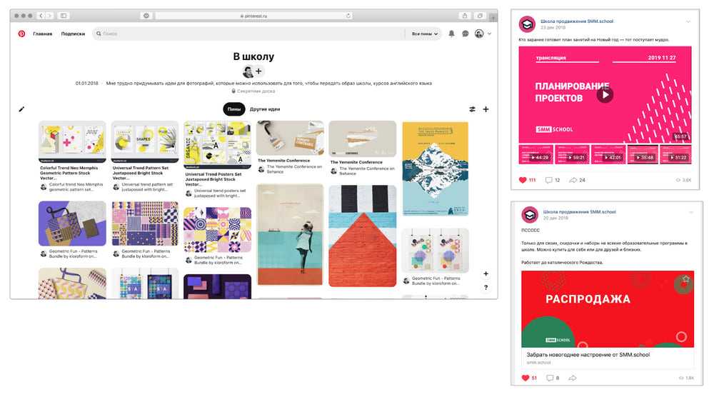 К примеру, у меня была задача «разработать простое оформление для SMM.school», я собрал мудборд и на его основе сделал простые шаблоны для сообществ школы