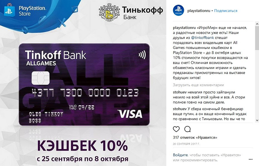 Совместный конкурс «Тинькофф Банк» и Playstation.ru