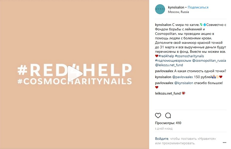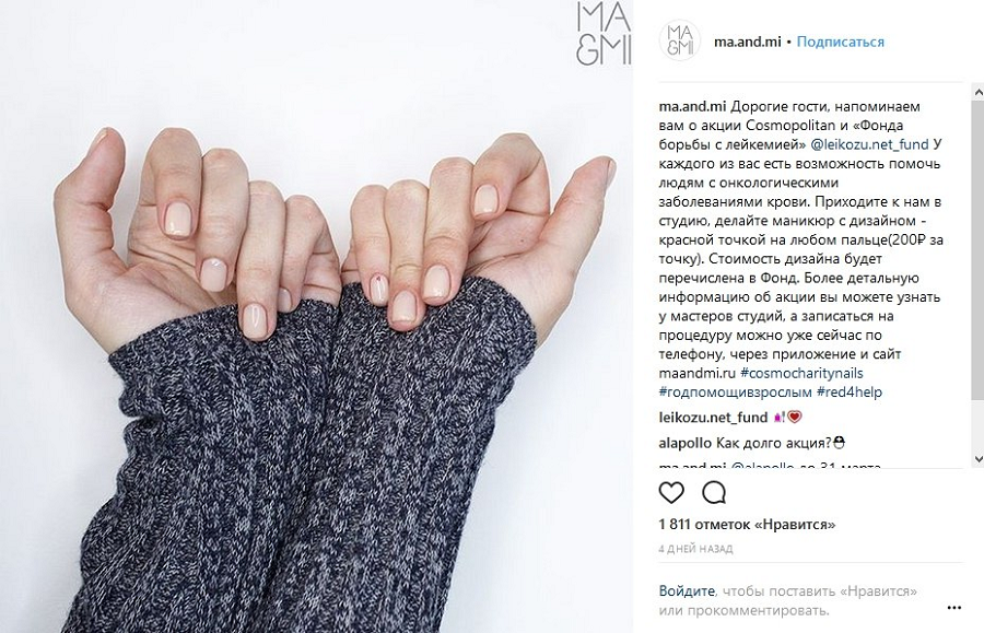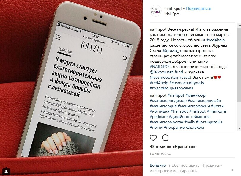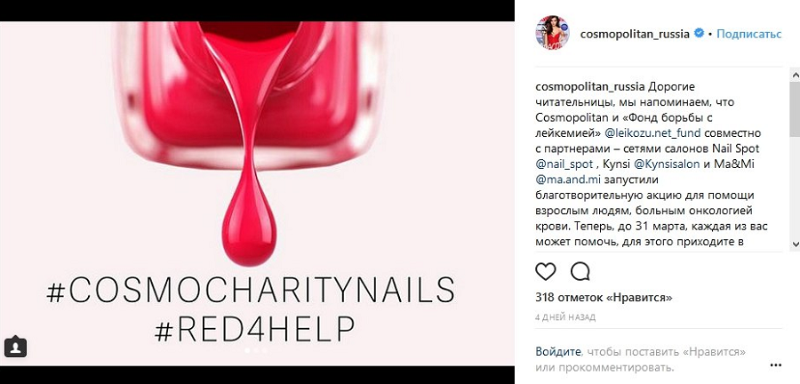 Журнал Cosmopolitаn провел благотворительную акцию с партнерами и рассказал об этом в Instagram