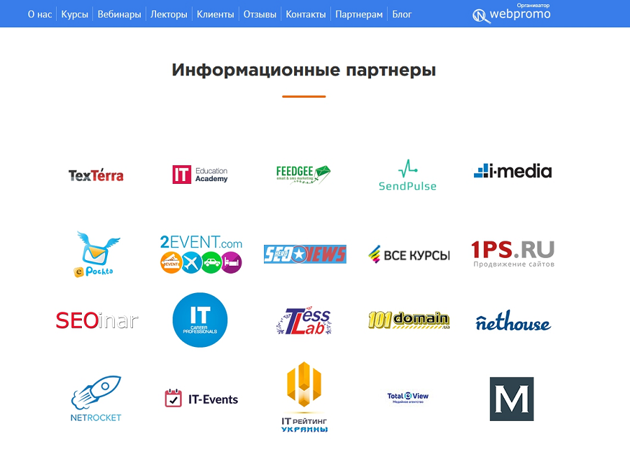 Вариант витрины партнеров от «Нетологии<
