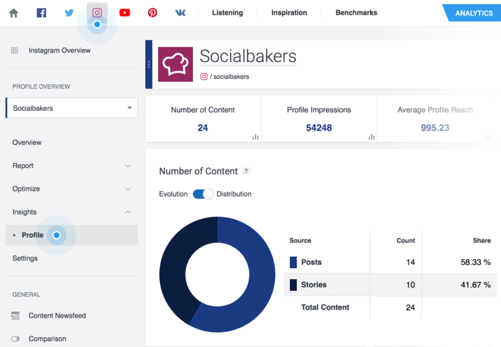 Это современный маркетинговый инструмент, позволяющий собрать исчерпывающий анализ эффективности продвижения профиля не только для инсты, но и других социальных сетей — Фэйсбука, Твиттера и ВКонтакте. Сервисом можно пользоваться бесплатно, фри-версия позволяет получать данные 1 раз в день за период до 6 месяцев. Анализ ведется по 5 параметрам. Чтобы получить доступ к более полной статистике и возможность экспортировать данные в текстовый или графический формат, придется купить подписку.