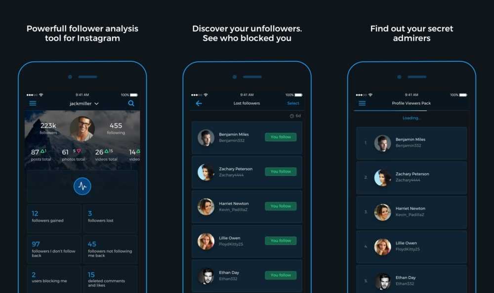 Утилита с удобным переключением интерфейса с английского на русский доступна для установки на мобильные устройства с iOS и на базе Android. Позволяет просматривать, кто заблокировал профиль или отписался от него, скрыл новости из ленты. С помощью приложения можно также увидеть и наиболее активных подписчиков, кто ставит больше всего лайков и оставляет комментарии.