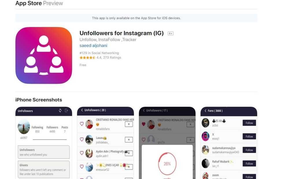 В официальном магазине AppStore также можно найти немало программ, позволяющих контролировать подписчиков. Так же, как и в случае с приложениями для Андроид, отслеживание производится только с момента установки. Требуется авторизация с учетными данными Инстаграм и отключение двухфакторной идентификации в приложении.