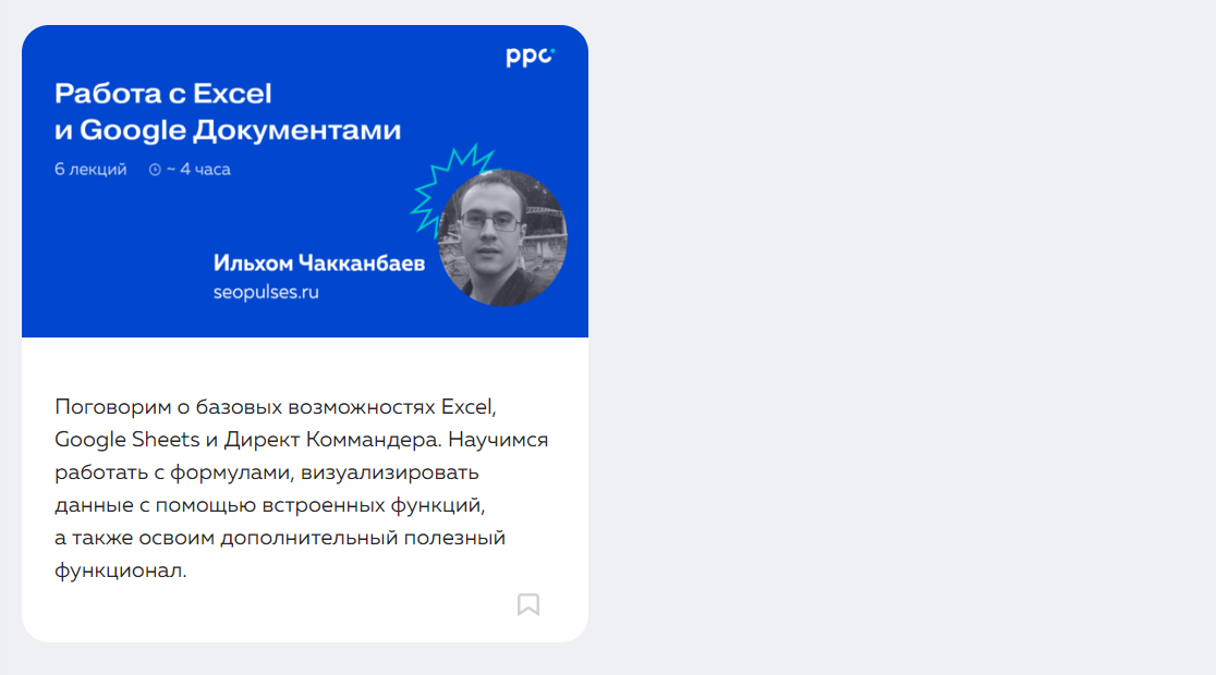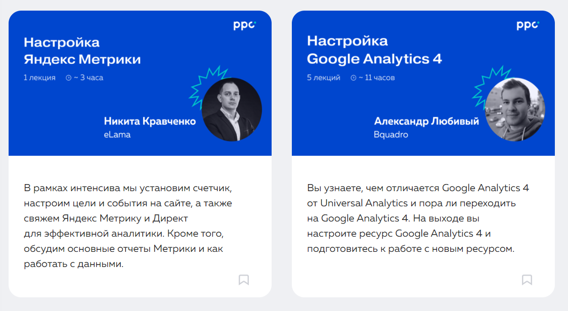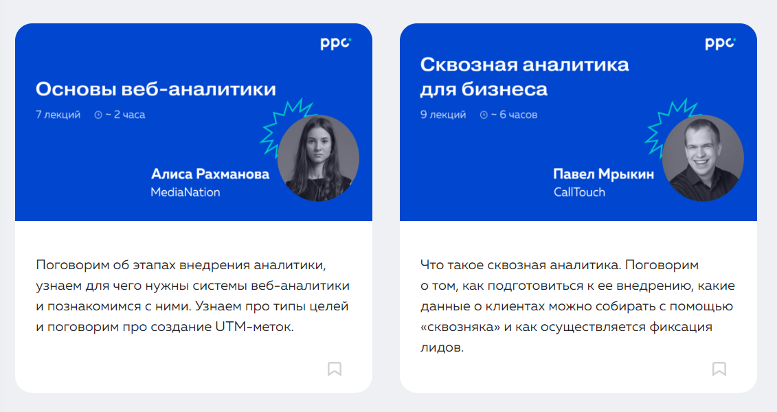 Если авторизоваться на ppc.world, то в своем профиле можно бесплатно посмотреть 7 курсов по аналитике. Лекции ведут практикующие специалисты eLama, MediaNation, CallTouch, Bquadro. Наша команда регулярно обновляет курсы — перезаписывает лекции, которые теряют актуальность.