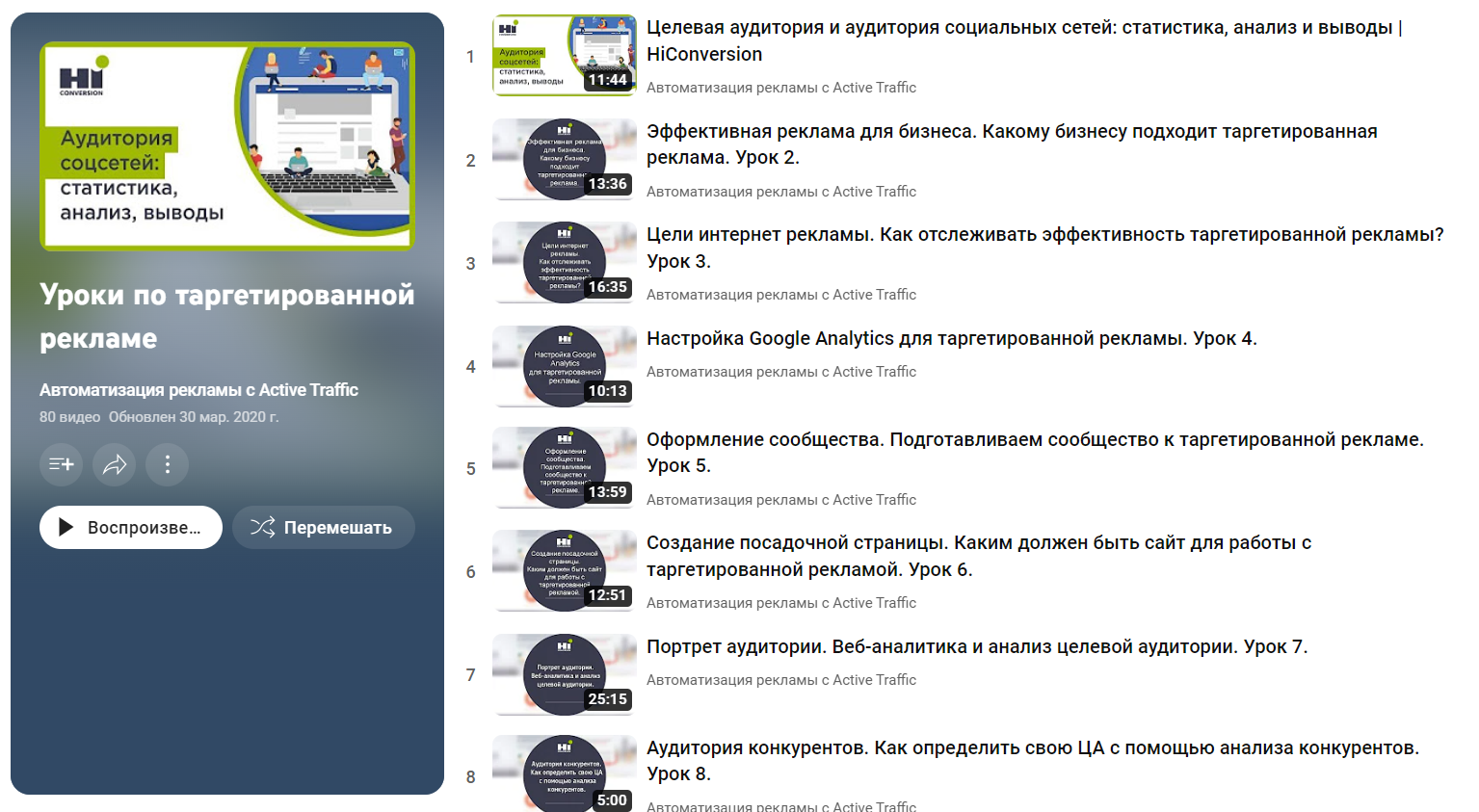 Этот курс размещен на YouTube в открытом доступе, он состоит из 68 видеолекций. В них разбираются особенности и запуск рекламы на всех популярных площадках: «ВКонтакте», Facebook и myTarget, также есть информация о продвижении в TikTok Ads. Курс обновлялся в последний раз в 2020 году, но универсальные темы можно посмотреть и сегодня.