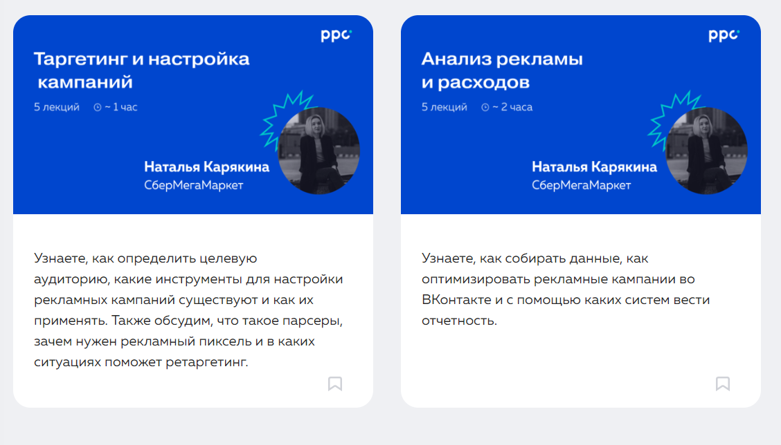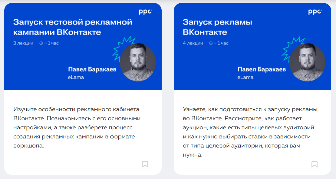 Для авторизованных пользователей на ppc.world доступных 6 курсов по рекламе Вконтакте: от составления медиаплана до анализа рекламы и расходов. В каждом курсе — от 3 до 6 лекций. Лекции ведут практикующие специалисты eLama, Практики SMM, СберМегаМаркета. Наша команда регулярно обновляет курсы — перезаписывает лекции, которые теряют актуальность. Чтобы просмотреть курсы, авторизуйтесь на ppc.world, зайдите в свой профиль и выберите «Курсы» в левом меню.