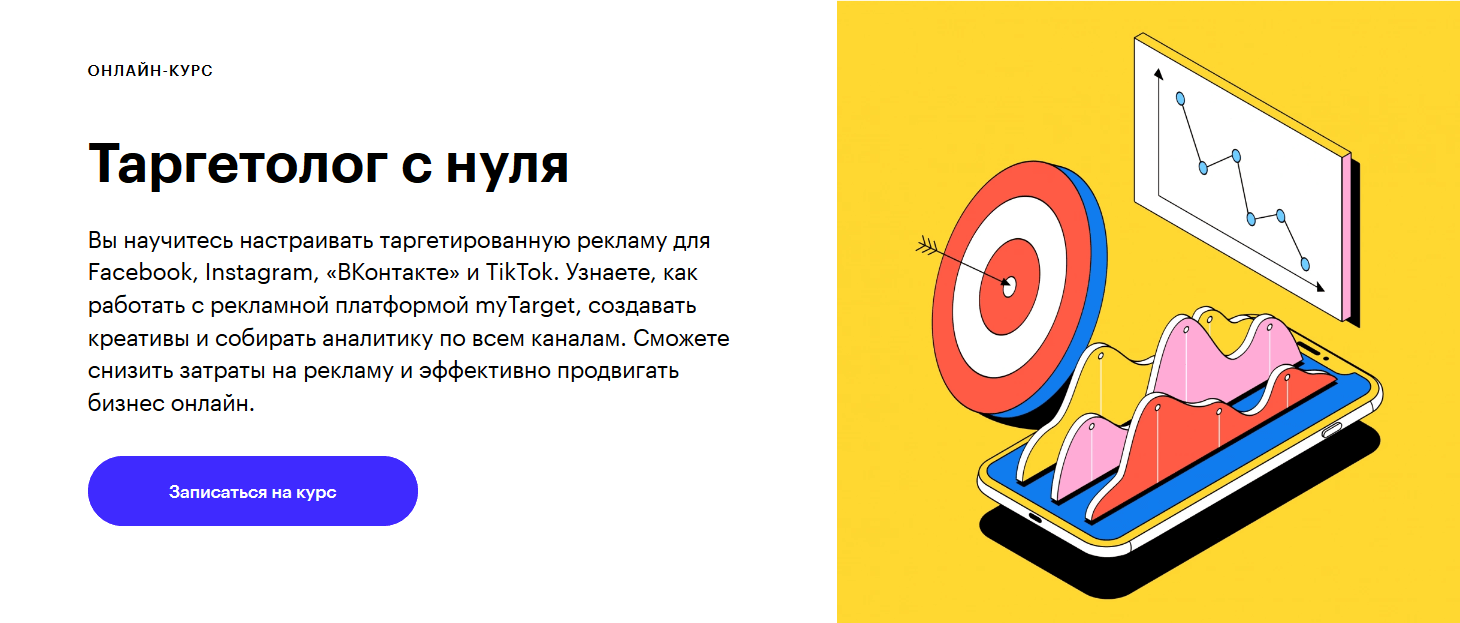 Этот курс по рекламе одобрен площадками ВКонтакте и myTarget, разработан совместно с performance-агентством с 10-летним стажем Adventum. Нацелен на абсолютных новичков.