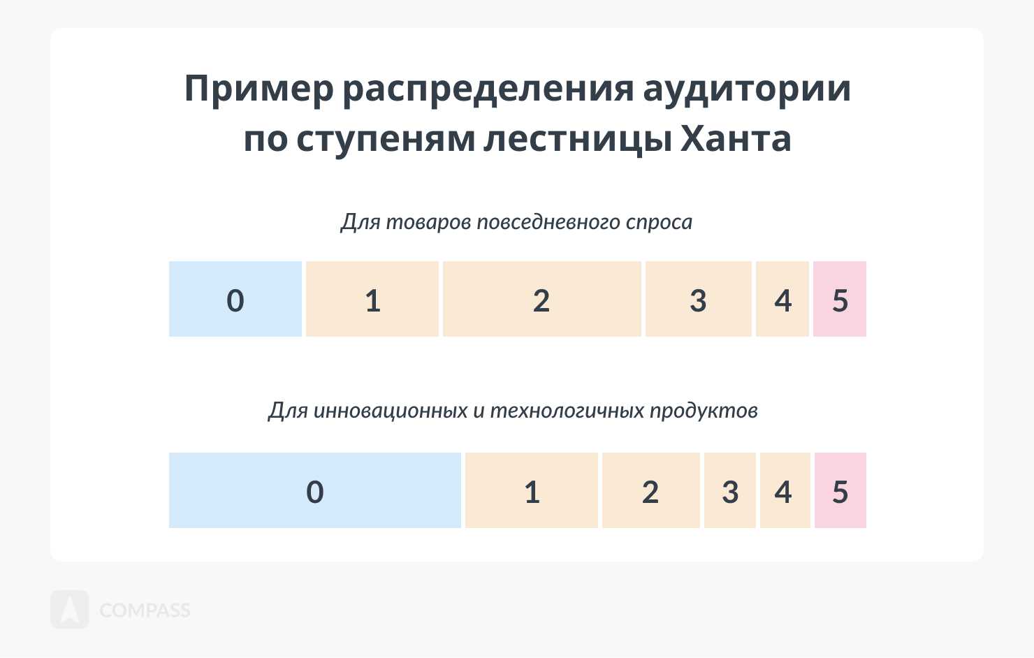 Например, для товаров повседневного спроса таких, как чай или кофе, количество людей на 0 и 1 этапах будет небольшим. Для инновационных и технологичных компаний, напротив, основная часть аудитории может быть не осведомлена о проблеме, которую решает продукт.