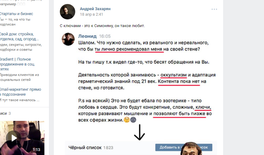 Этот прием часто используют маркетологи, бизнес-консультанты, психологи. Вы создаете свой блог в соцсетях и пишете туда полезный, максимально качественный контент. Пример такого продающего блога — блог Ильи Трикси. Он пишет профессиональный контент, но в эмоциональном и эпатажном стиле. В то же время в товарах группы он предлагает обучаться у него SMM, консультироваться по бизнесу.