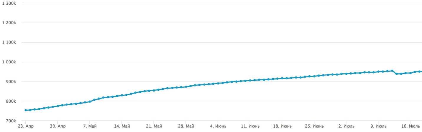 Обычный график изменения общего количества подписчиков: