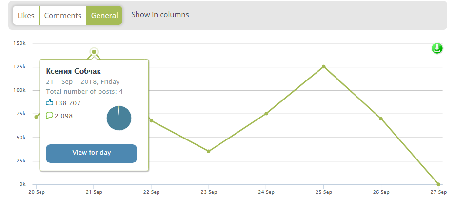 - Показывает активность аудитории по часам / дням недели, динамику лайков и комментариев;