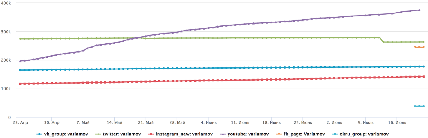 График с изменениями по количеству подписчиков по каждому аккаунту: