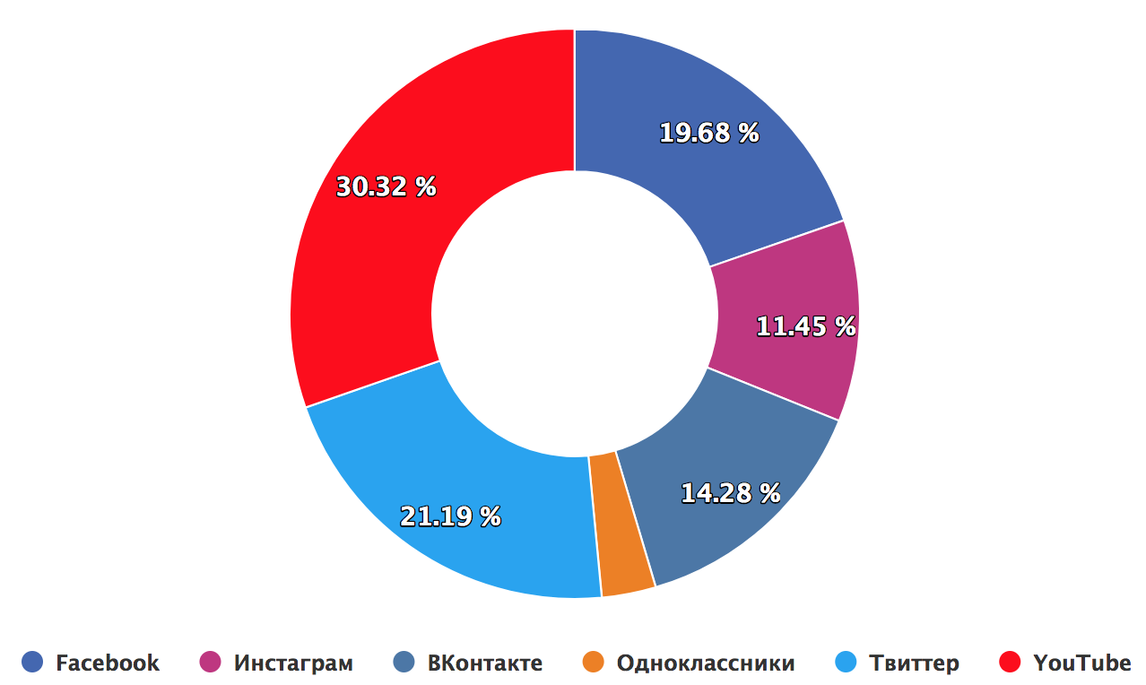Распределение подписчиков по социальным сетям, чтобы сразу было понятно, где их больше: