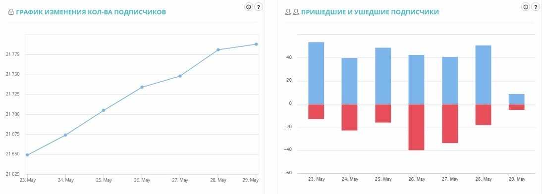 - Прирост подписчиков и количество отписавшихся;