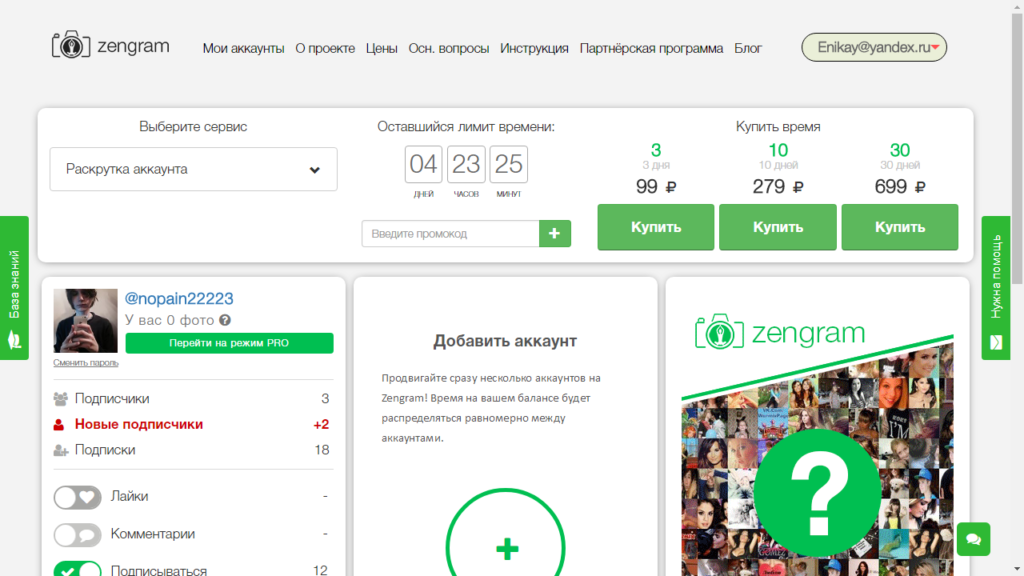 Сервис поддерживает несколько тарифных планов, отличающихся числом используемых для продвижения аккаунтов. Минимальная цена – 299 рублей в месяц. Максимальное число аккаунтов для одновременной работы – 50.