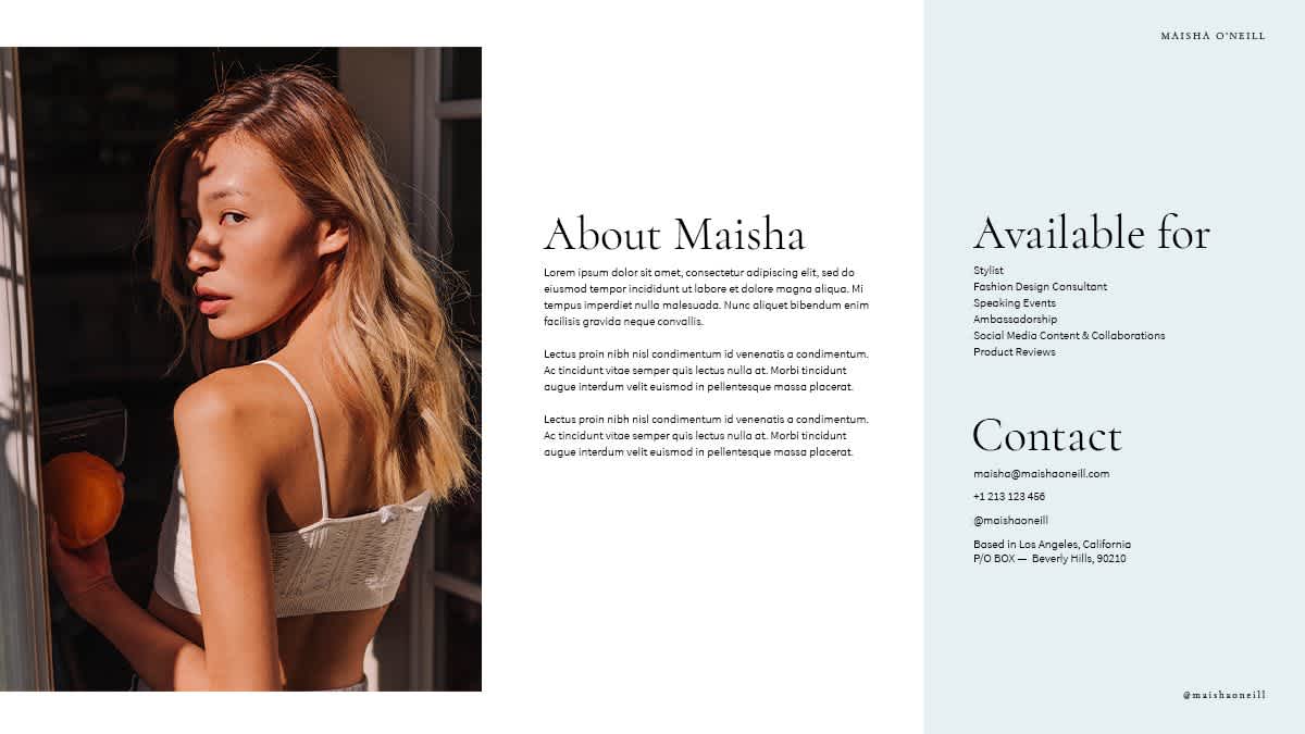 Whether you’re a fashion, gaming, or fitness influencer, your media kit has to follow a particular theme.