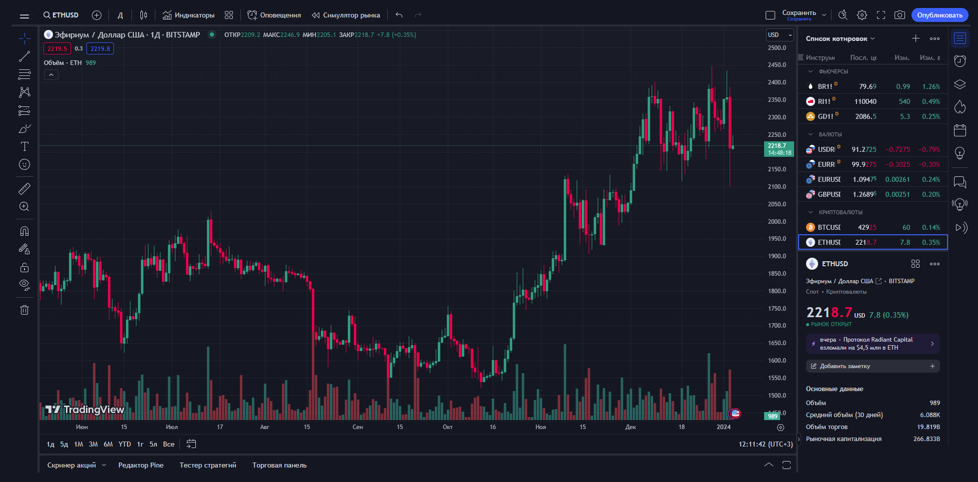 - Инструменты построения графиков и подключение к API криптобиржи;