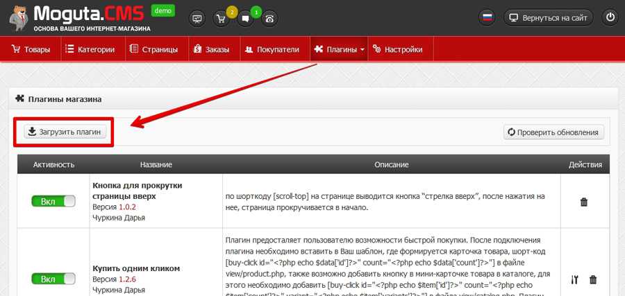 Их у Moguta.CMS действительно много, и что наиболее важно – это как раз те дополнения, что так необходимы сайту. Например, Хлебные крошки или кнопка Вверх