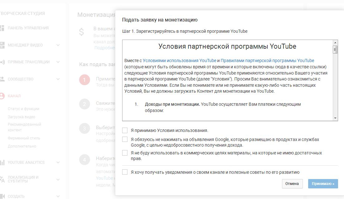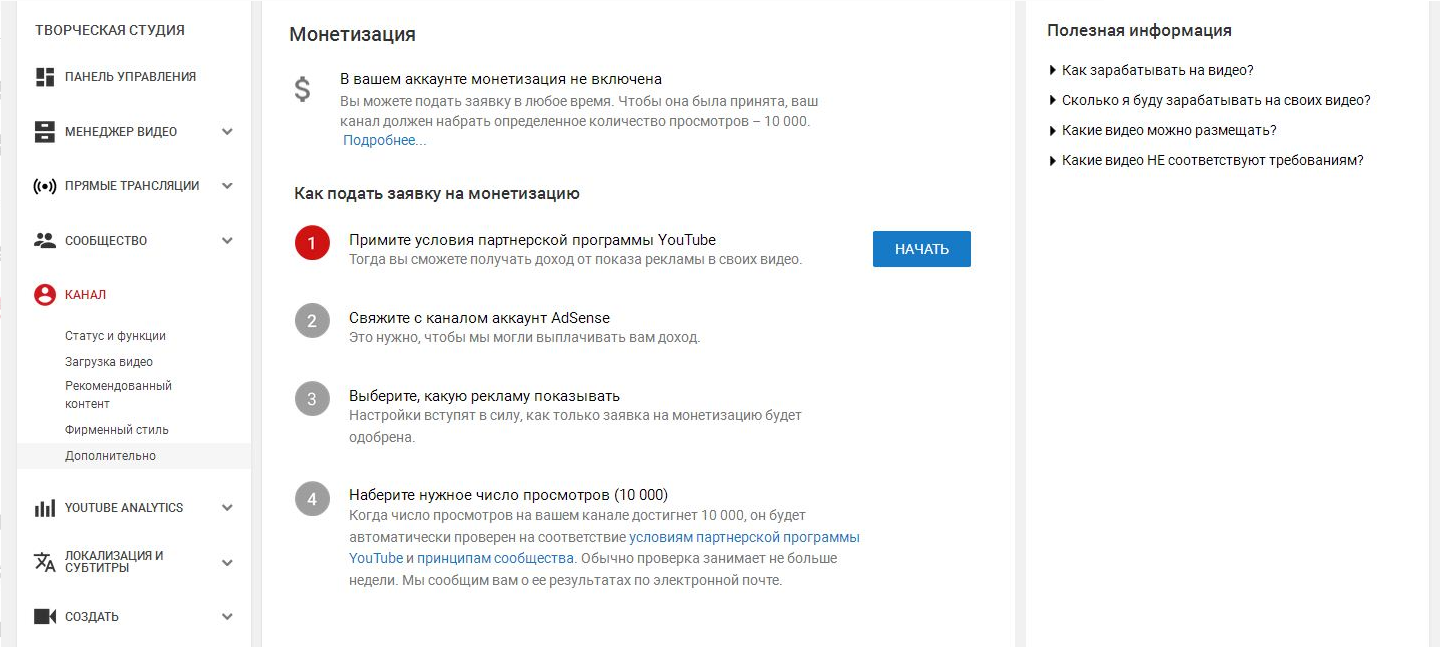 ↑ Пошаговая инструкция подключения монетизации YouTube