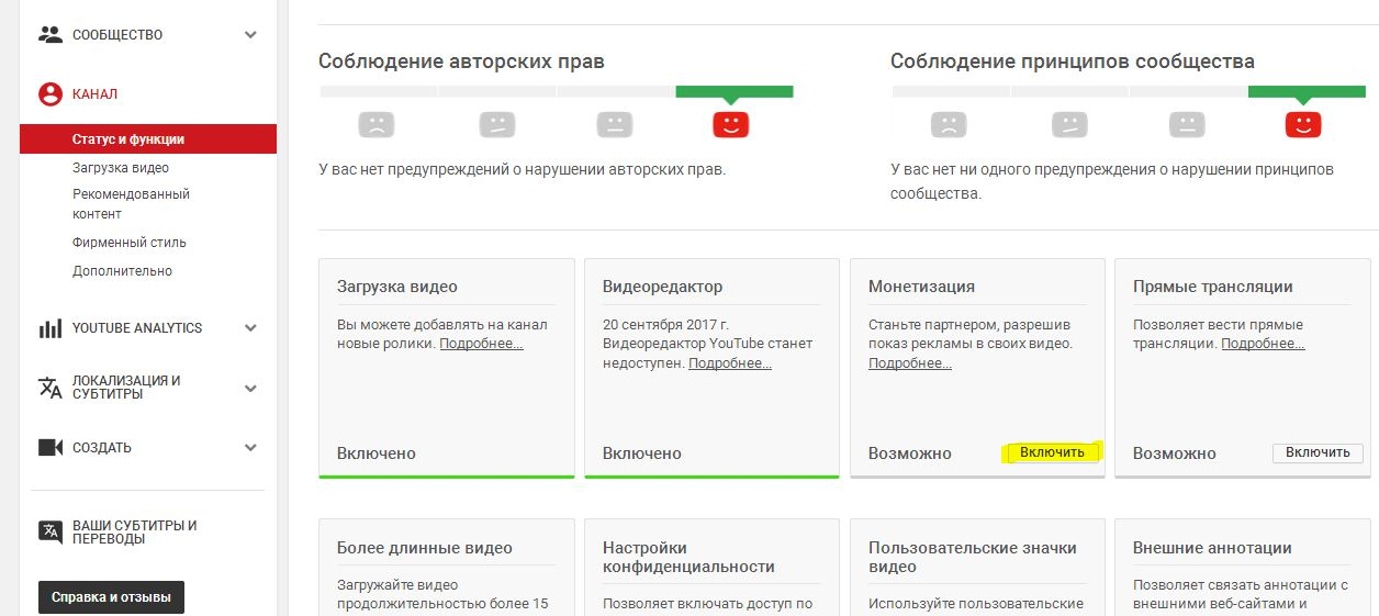 Важно! Включить монетизацию получится только на максимально интересных каналах, у которых большое количество подписчиков и просмотров.