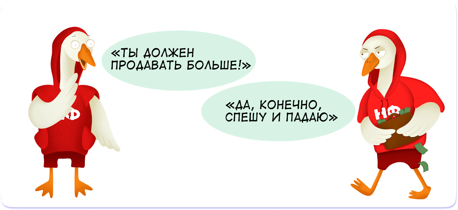 Например, доход менеджера завязан на процент от продаж. Менеджер напродавал на миллион, получил свой процент и успокоился. При этом план по продажам у отдела — десять миллионов, но менеджера это не беспокоит, он себе на зарплату уже заработал