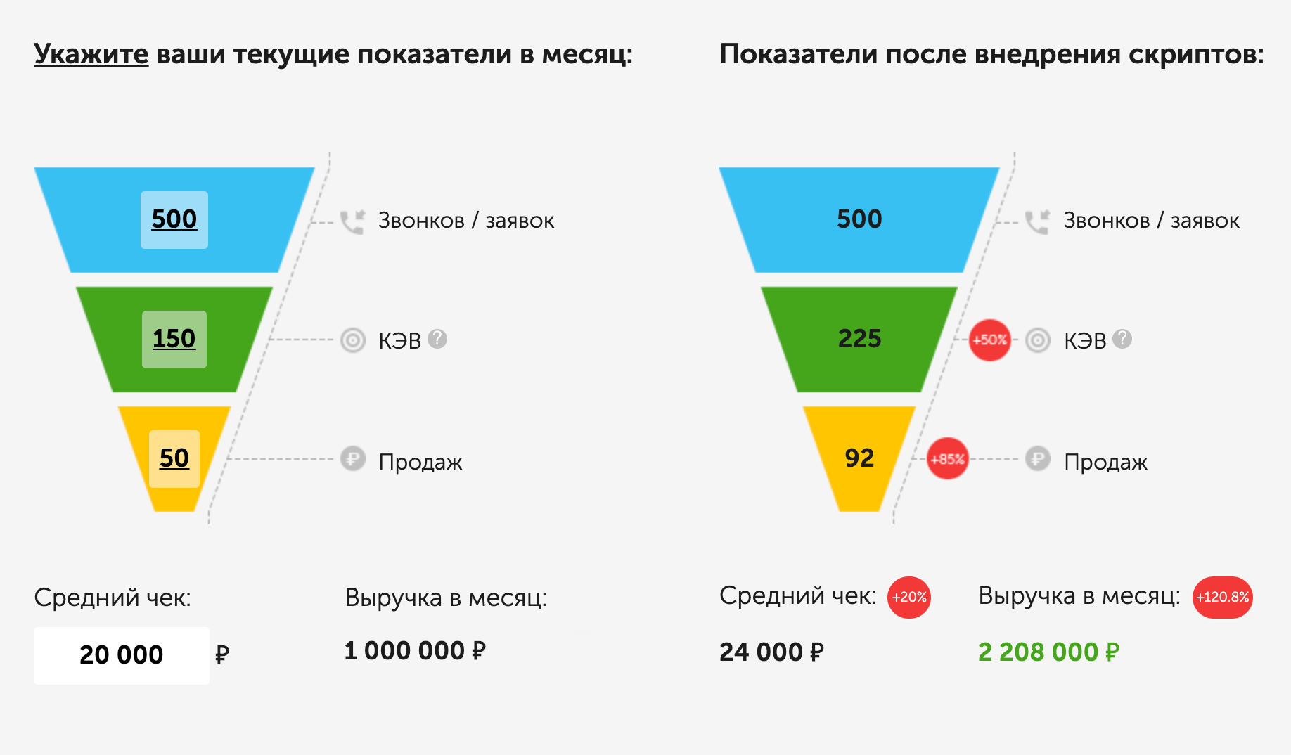 Многие компании рекламируют свою работу примерно так. КЭВ — это ключевой этап воронки, то есть действие, которое вы ждете от клиента: согласие на встречу или тест-драйв, расчет сметы