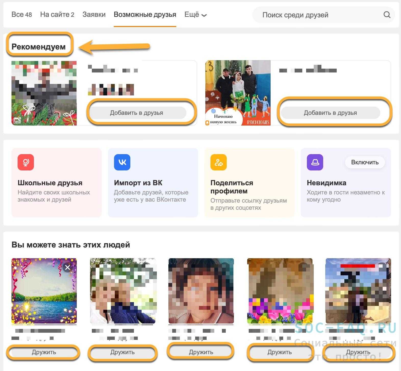 Одноклассники анализируют множество информации о пользователях. В том числе и их месторасположение, друзей. Предпочтения и т.д. На основании такого анализа специальный алгоритм соцсети подбирает рекомендации о потенциальных новых друзьях. Вы можете высылать им заявки на добавления в друзья.