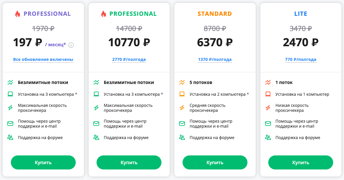 Также разработчики создали более 200 бесплатных шаблонов под разные задачи, а члены коммьюнити активно их развивают и улучшают — то есть помимо регулярных обновлений программы вы получаете поддержку от сервиса и других пользователей. Сейчас на ZennoPoster действует акция и можно подключиться всего за 197 руб. за первый месяц использования. Но даже без скидки цены более чем лояльные: