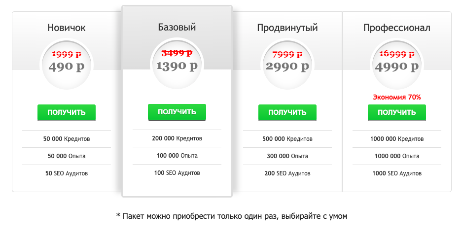 Дарят за регистрацию бонус посещения. Неплохая партнерская программа и три пакета услуг.