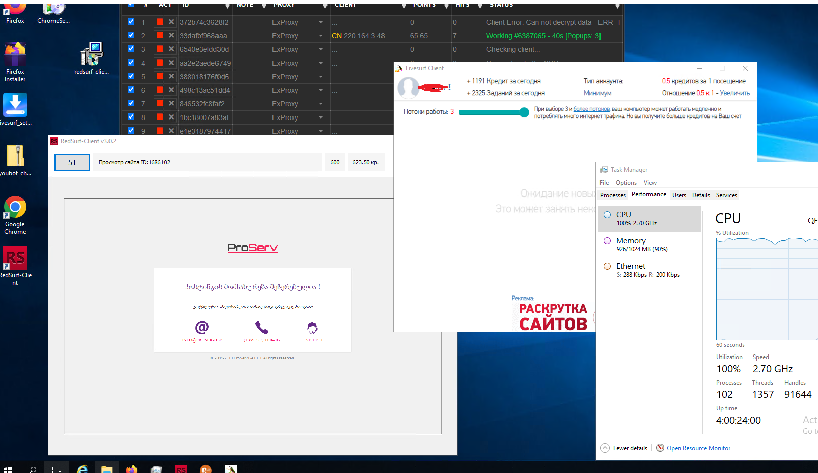 У меня на данный момент в один час собирает по 40 000 балов , и это не предел , сегодня на ноуте поставлю больше потоков и будет намного больше балов. Только с одной этой программы можно завалить сайт ботами так , что он начнет лагать.